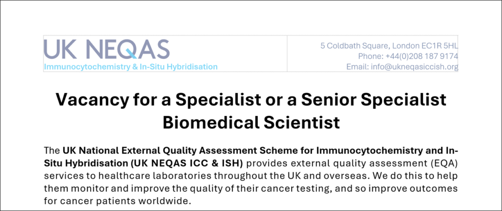 Due to the ever increasing demand for our EQA services we are seeking a suitably qualified biomedical scientist to join our team.